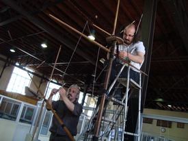 Durante várias semanas, os voluntários do Projecto estiveram nas instalações cedidas gentilmente pelo Arsenal do Alfeite, a preparar esta réplica flutuante, exemplo do que se deseja construir à escala real.
